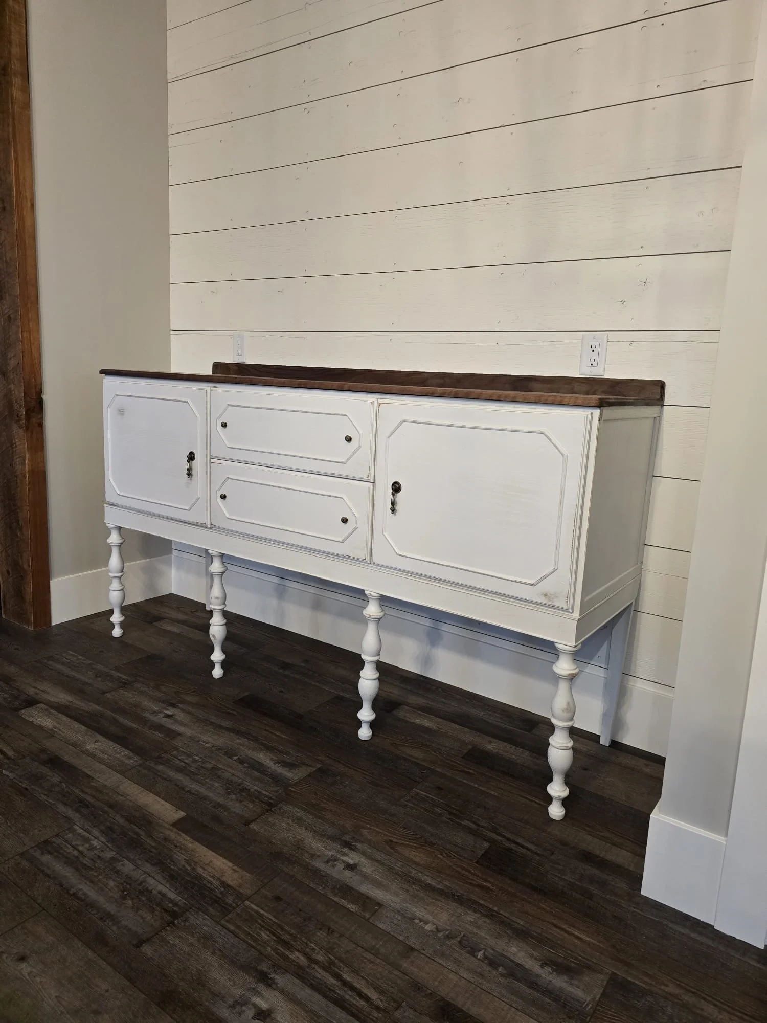 French Country Coffee Bar French country coffee bar made from solid oak, a black walnut top and subtle distressing.